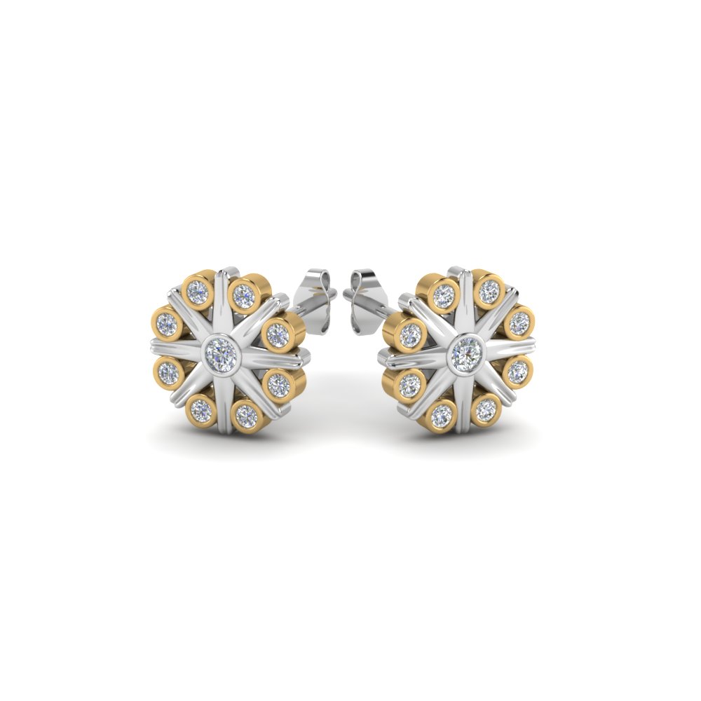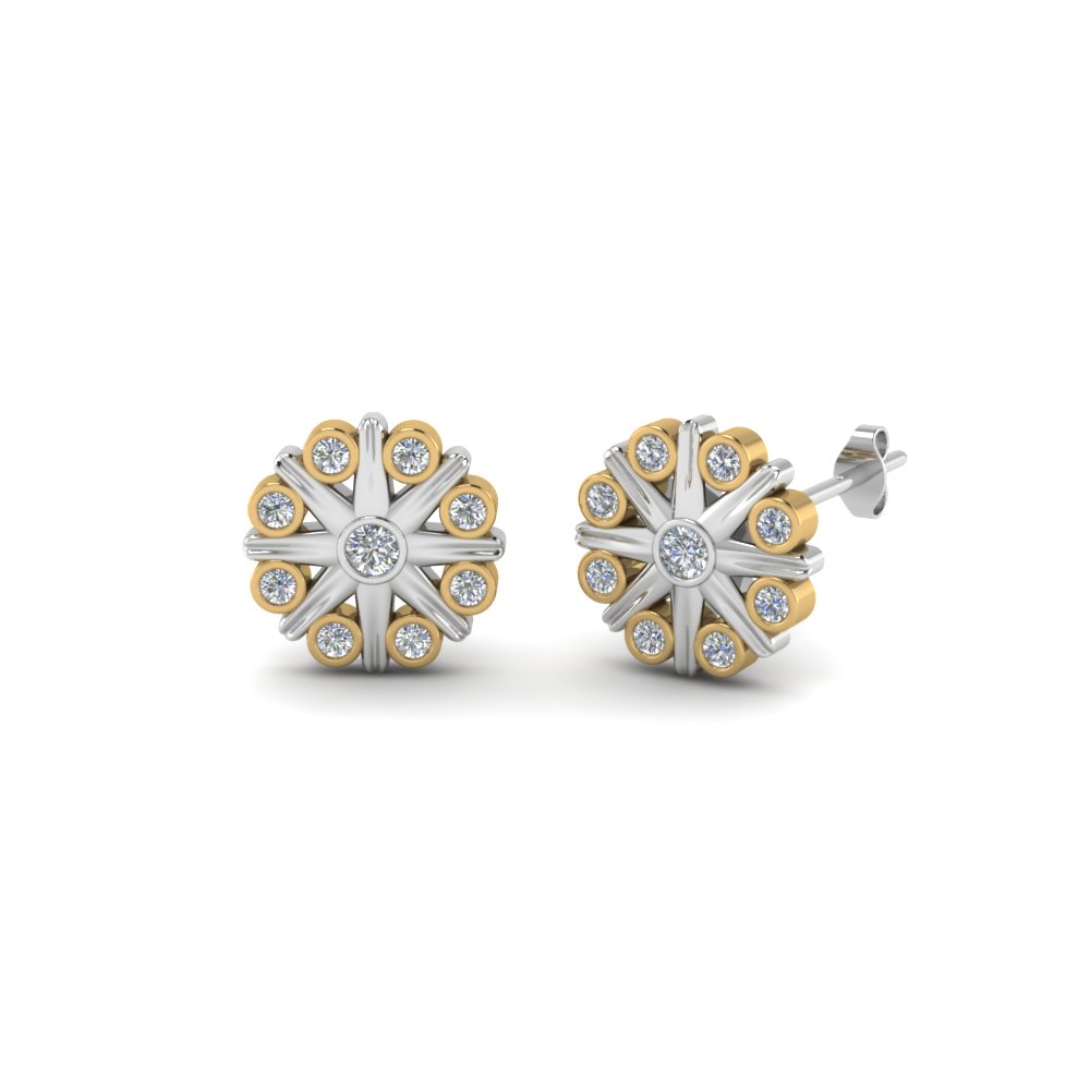 "Yuanhe Trading" Sterling Silver Bezel Flower Stud Earring Two Tone