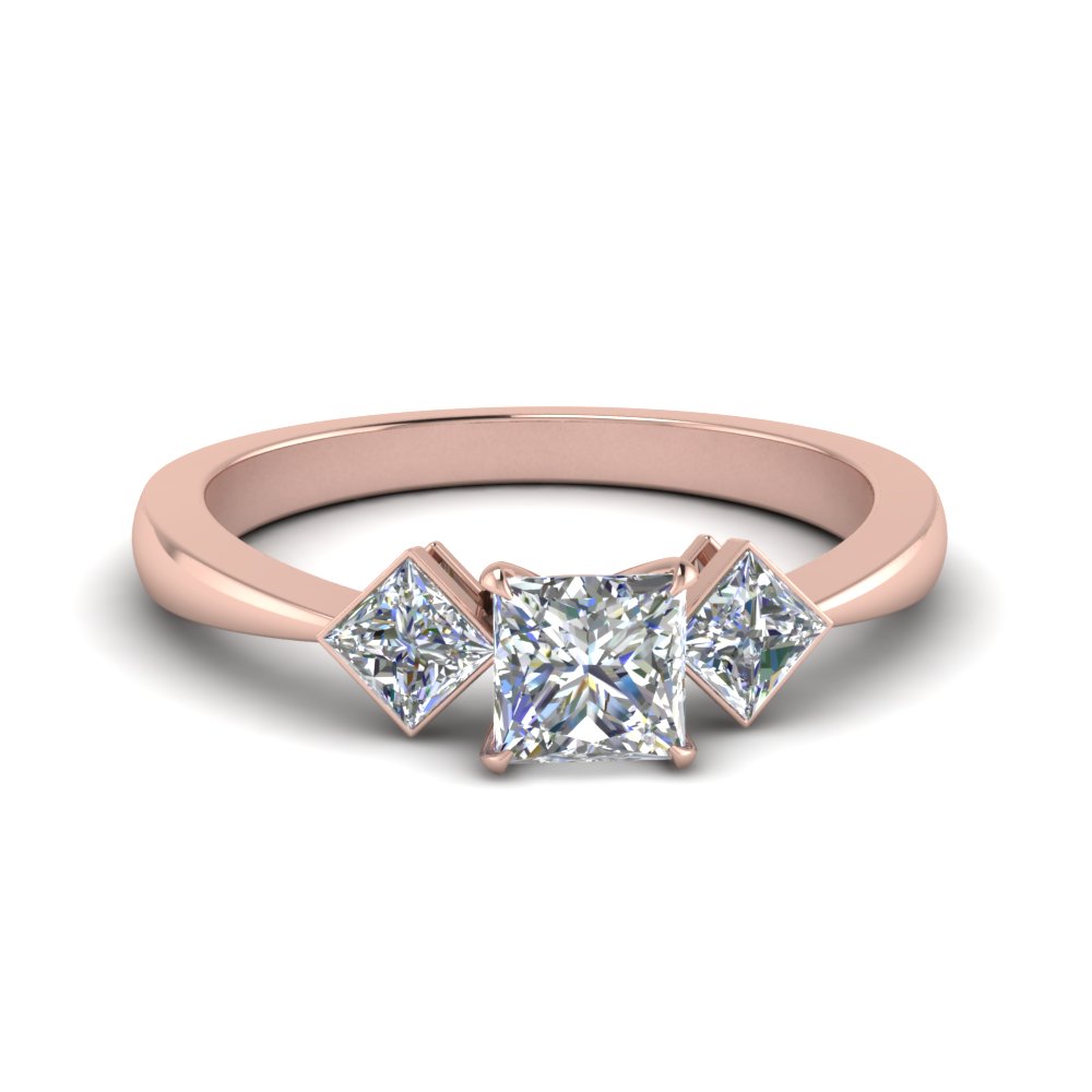 "Yuanhe Trading" Sterling Silver Cushion Cut Half Moon Three Stone Engagement Ring