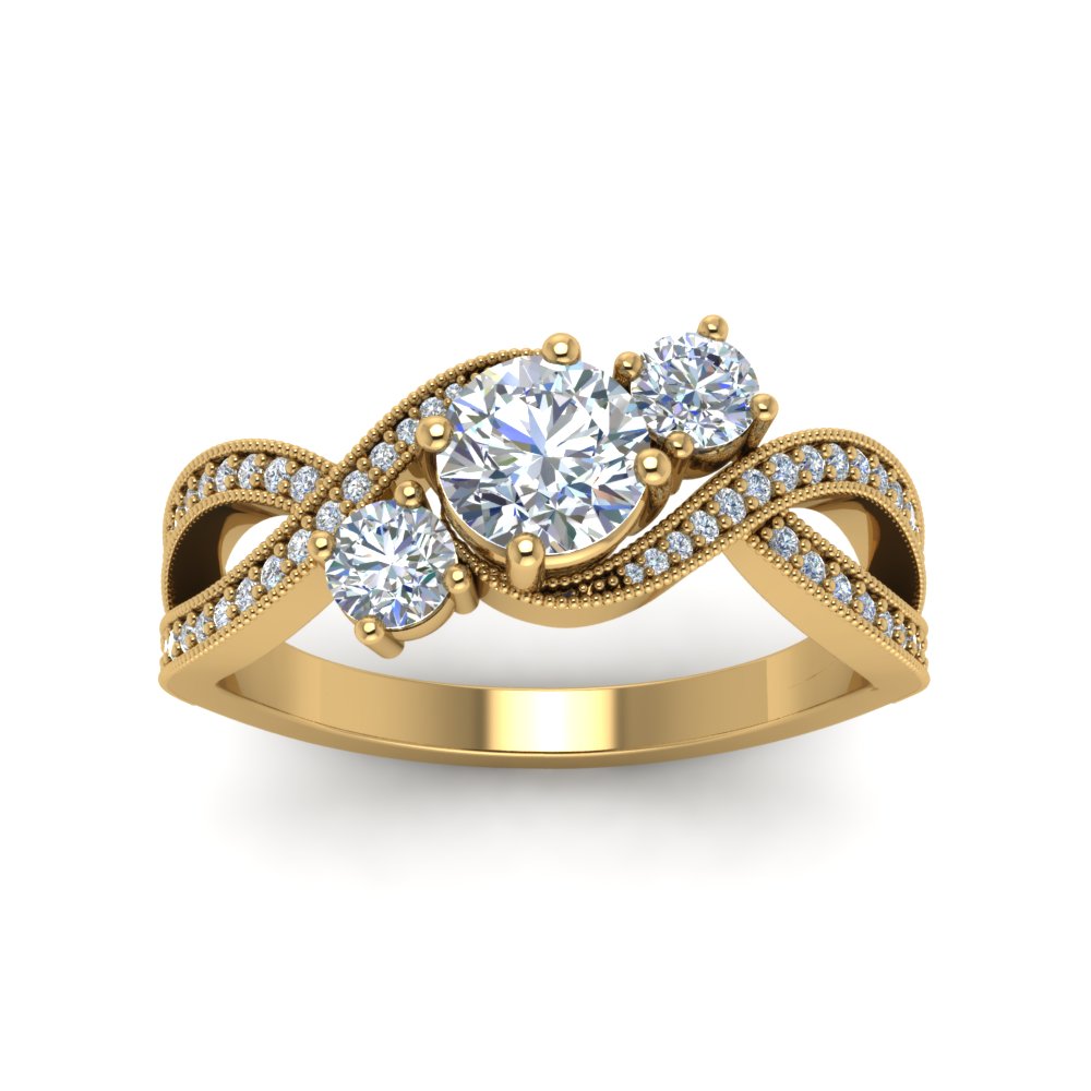 "Yuanhe Trading" Sterling Silver Three Stone Swirl Milgrain Ring