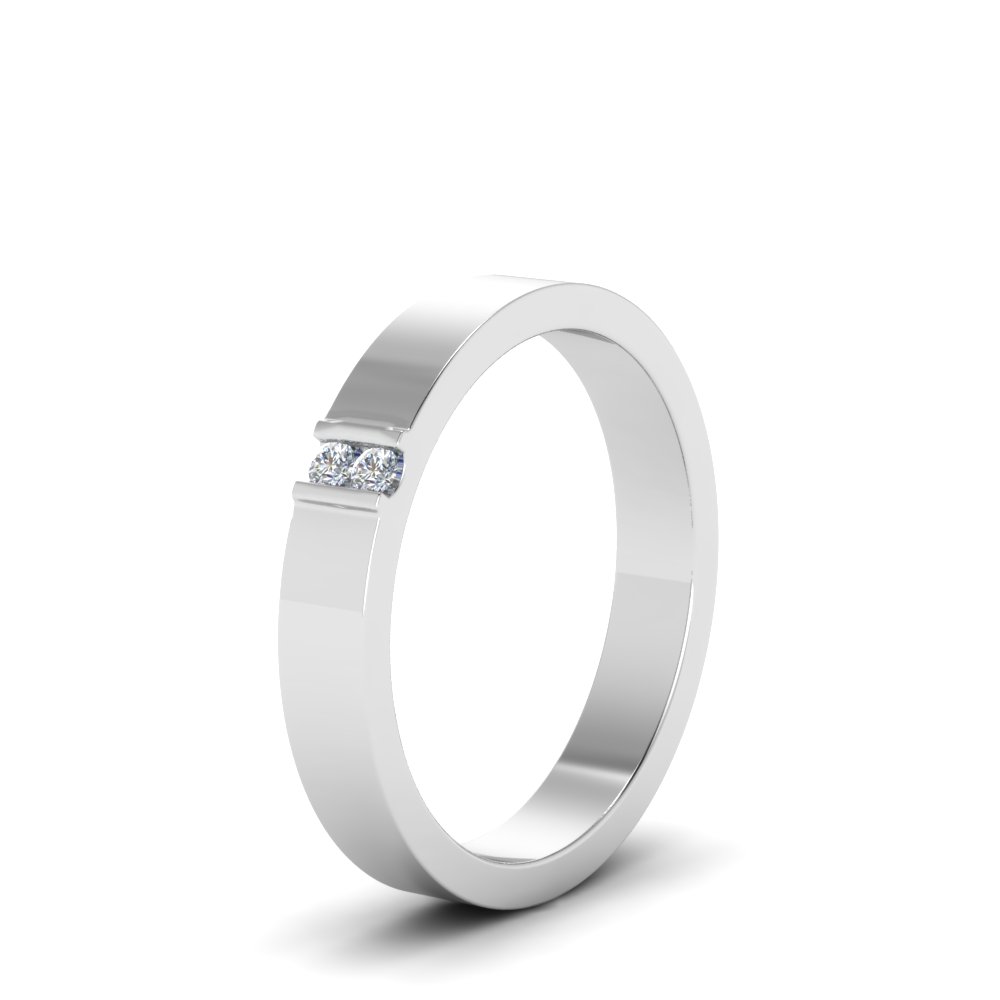 "Yuanhe Trading" Sterling Silver 4 MM Two Stone Flat Women Wedding Band