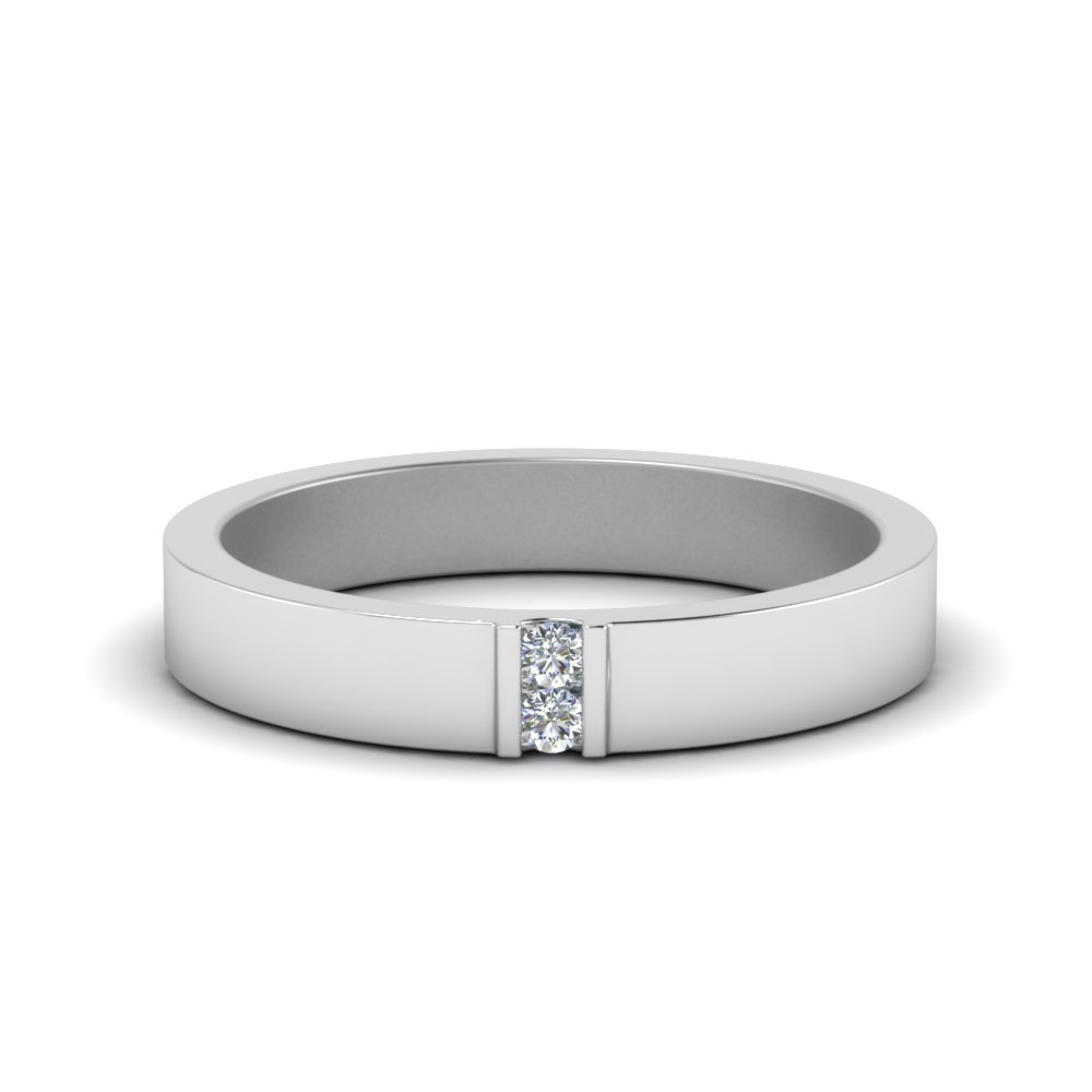 "Yuanhe Trading" Sterling Silver Flat Channel Set Mens Band