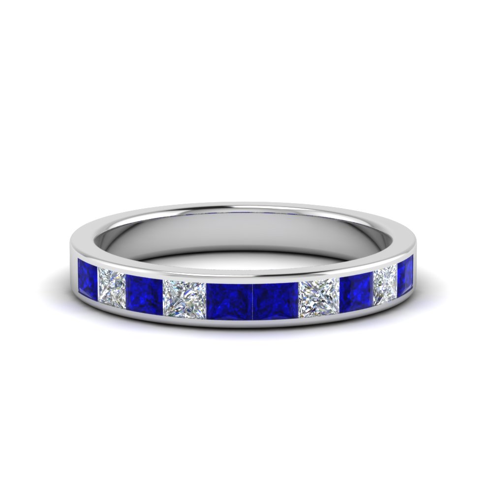 "Yuanhe Trading" Sterling Silver Channel Princess Cut Wedding Band