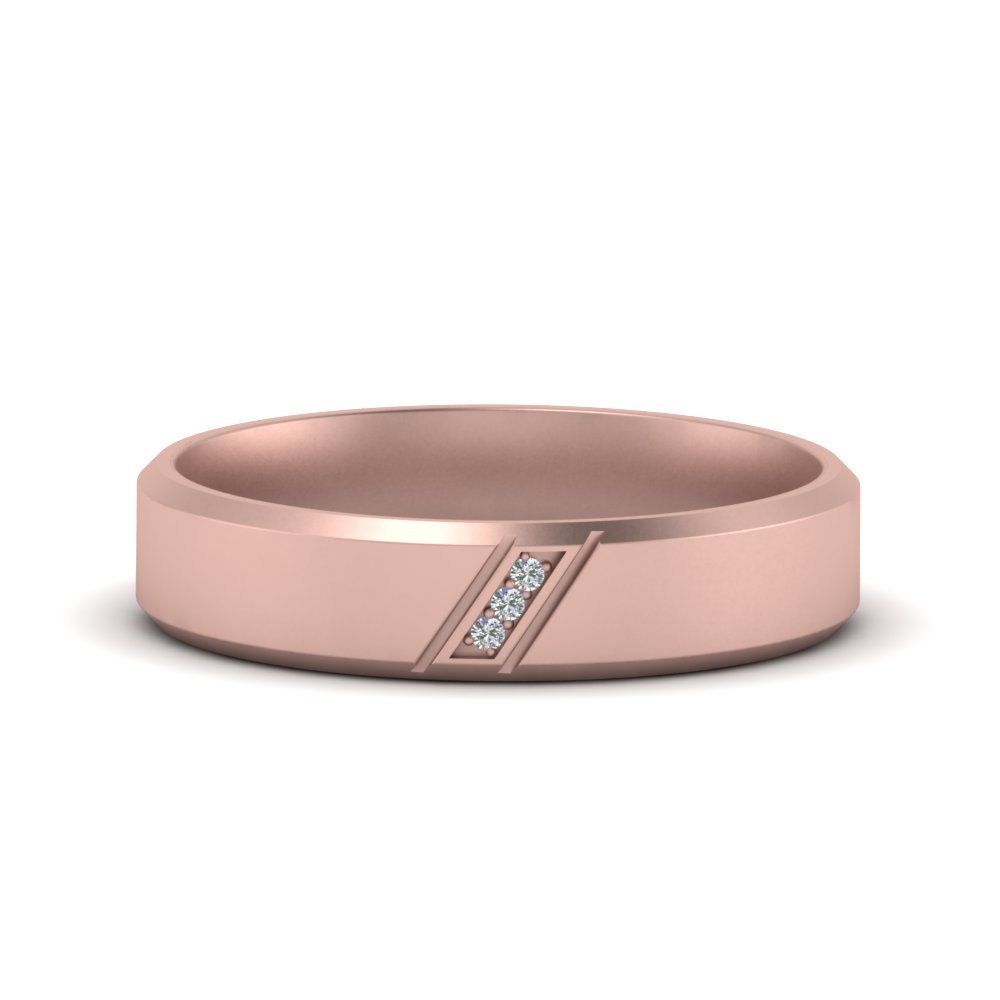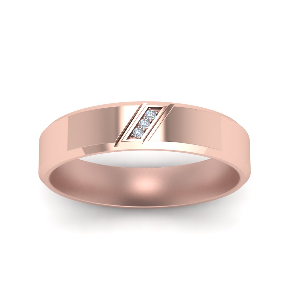 "Yuanhe Trading" Sterling Silver Beveled Three Stone Mens Wedding Band