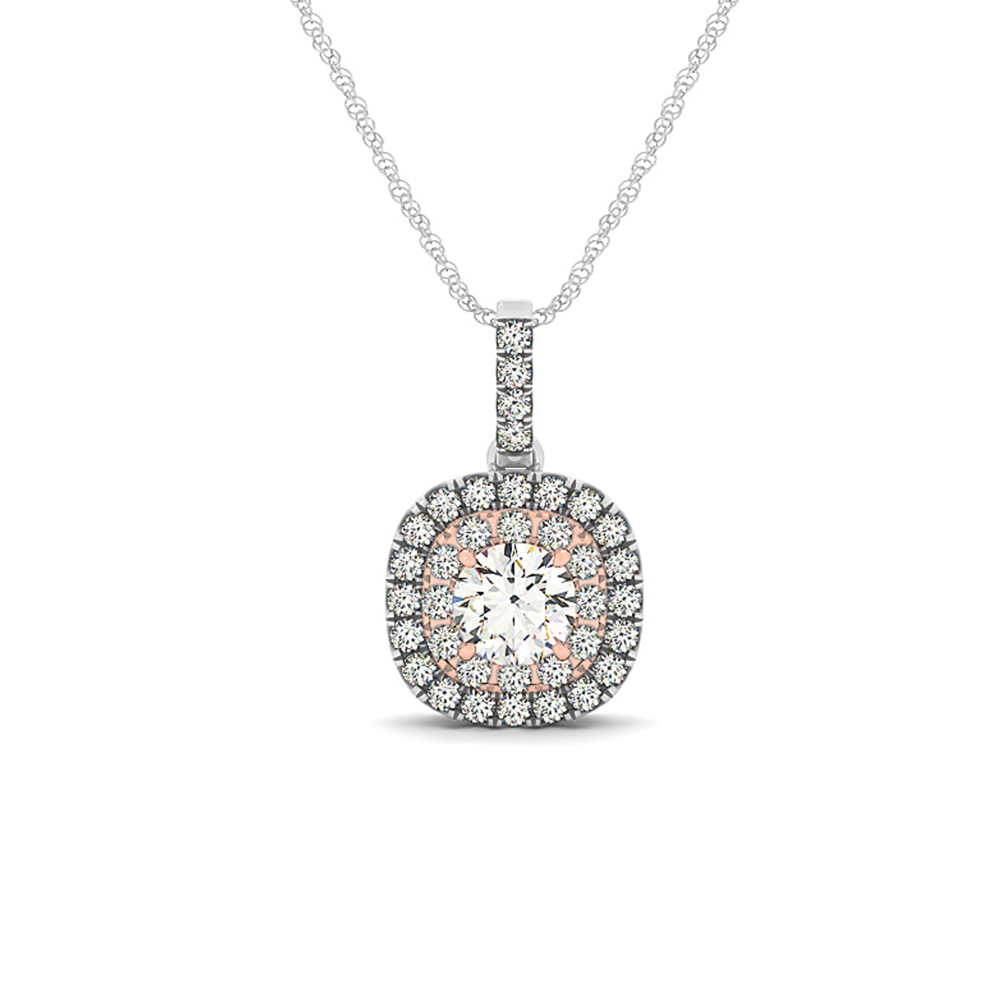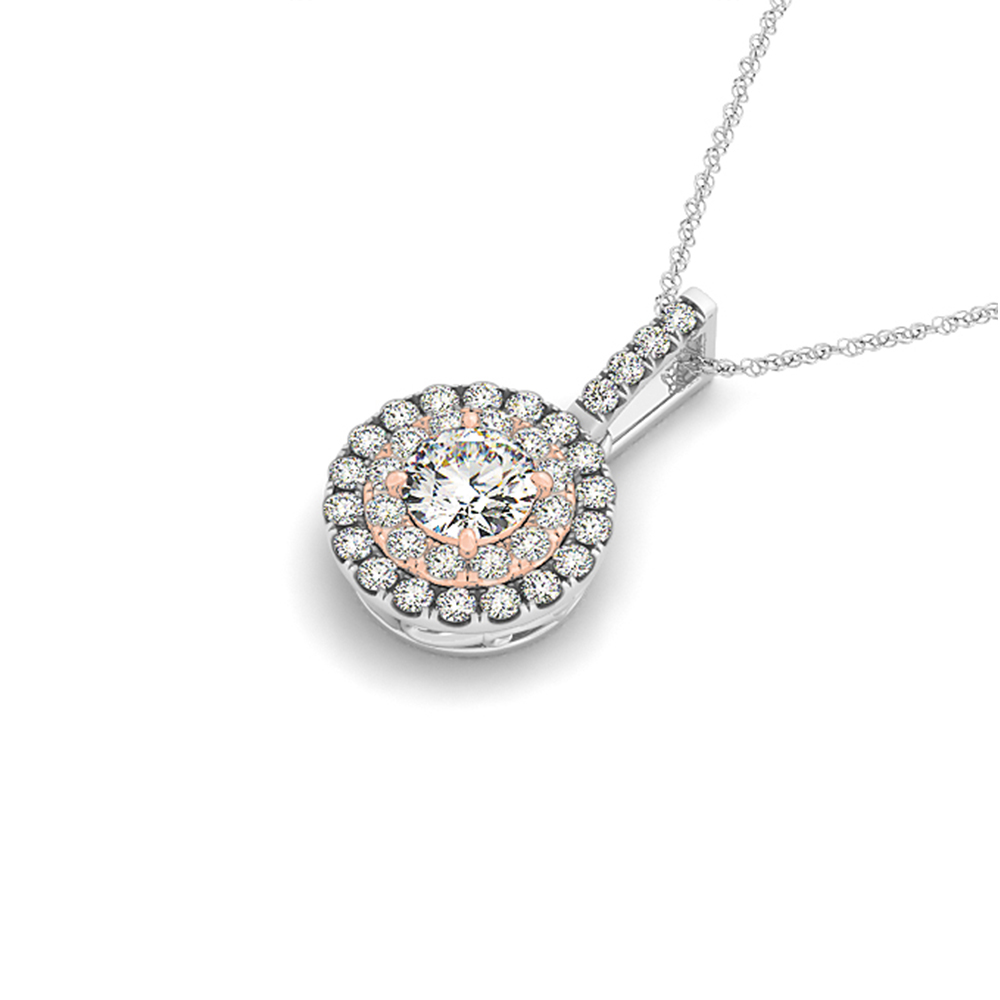 "Yuanhe Trading" Sterling Silver 2 Tone Double Halo Pendant