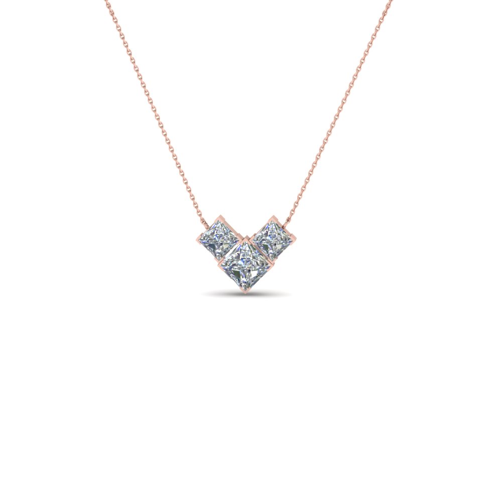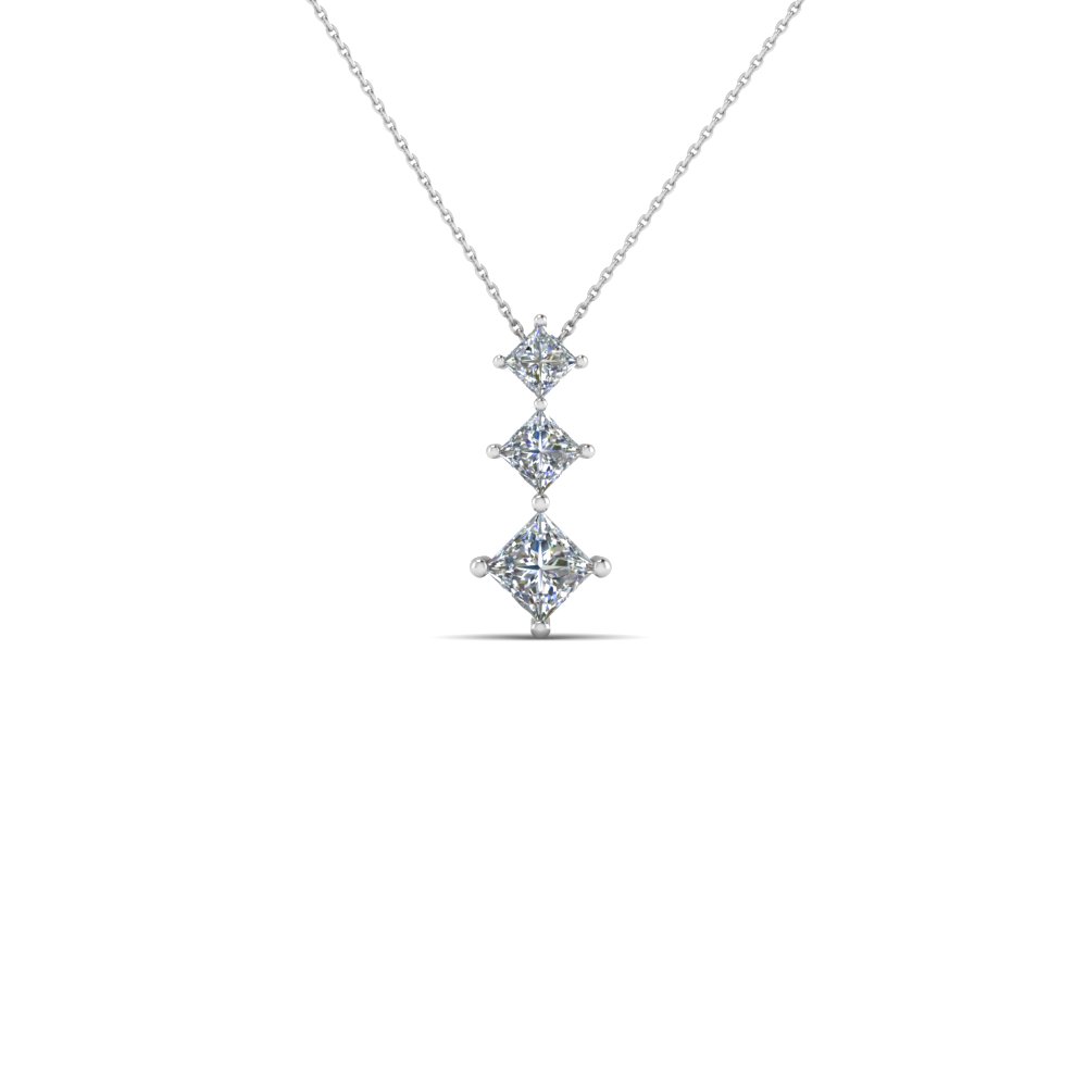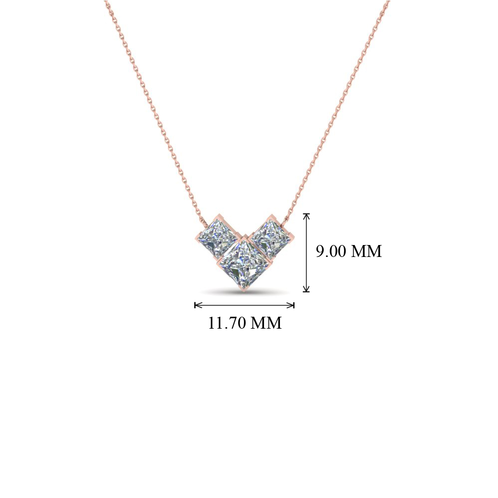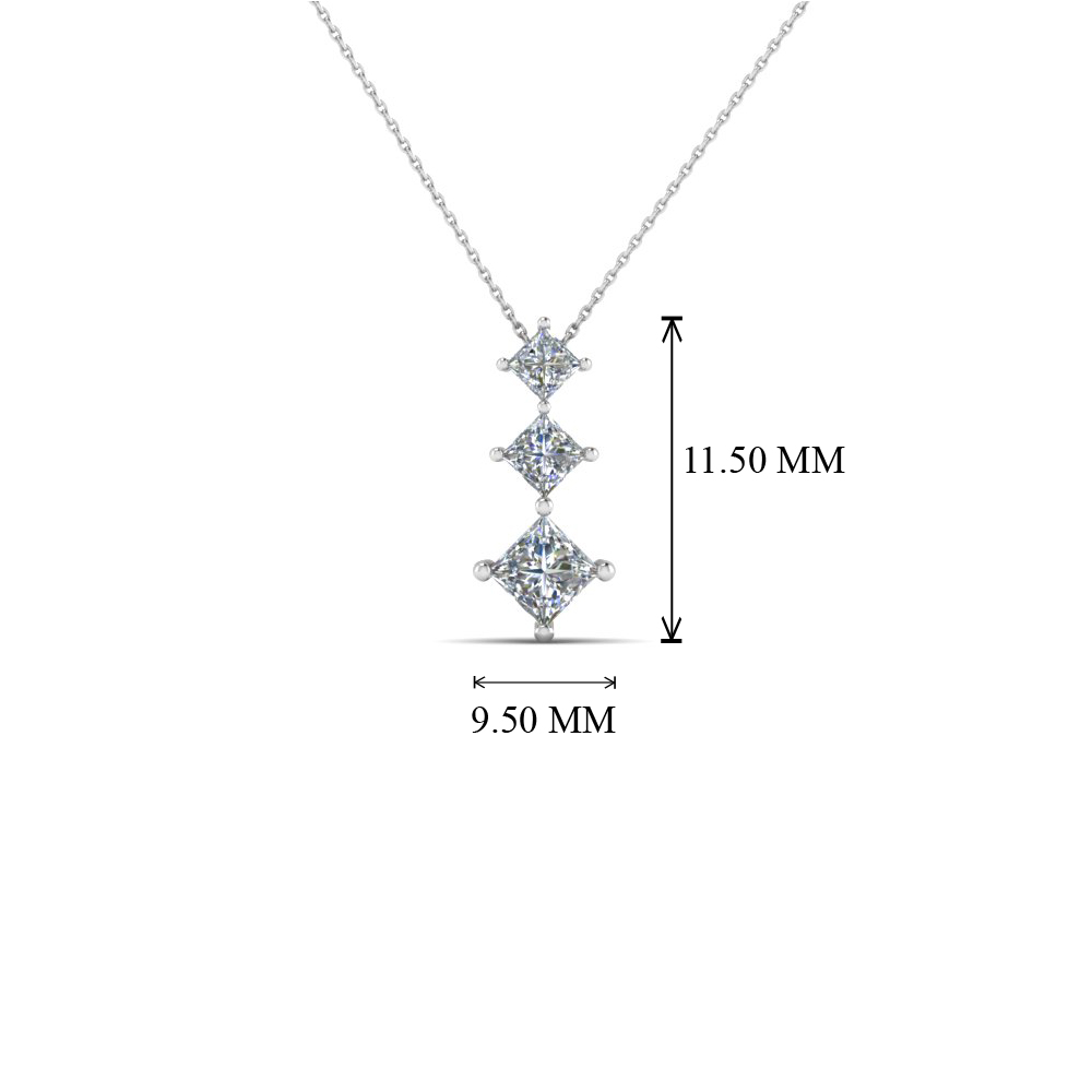 "Yuanhe Trading" Sterling Silver Three Princess Cut Pendant Necklace